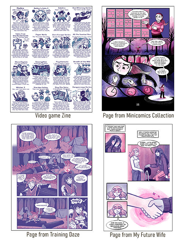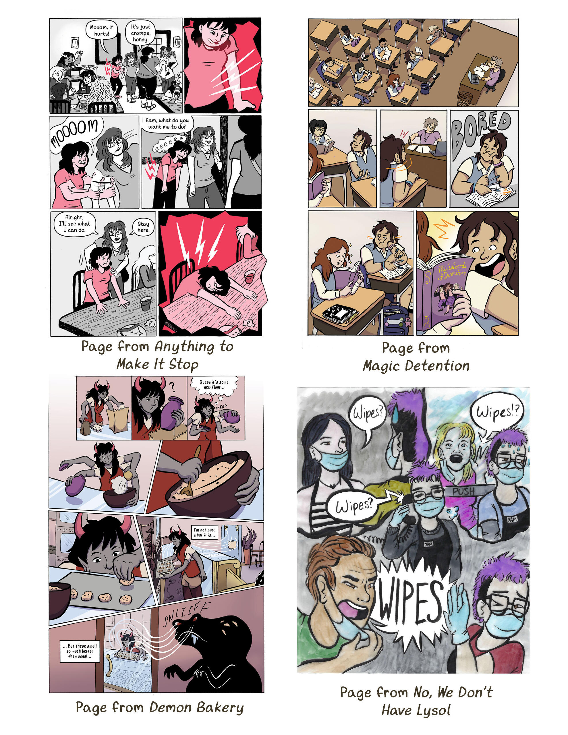 Sam Migliore is a cartoonist based out of Long Island, New York. They love making stories about anything fantastical or weird. They also enjoy making autobio comics. Their most recent work, Anything to Make It Stop, focuses on their experiences with extreme period pain.