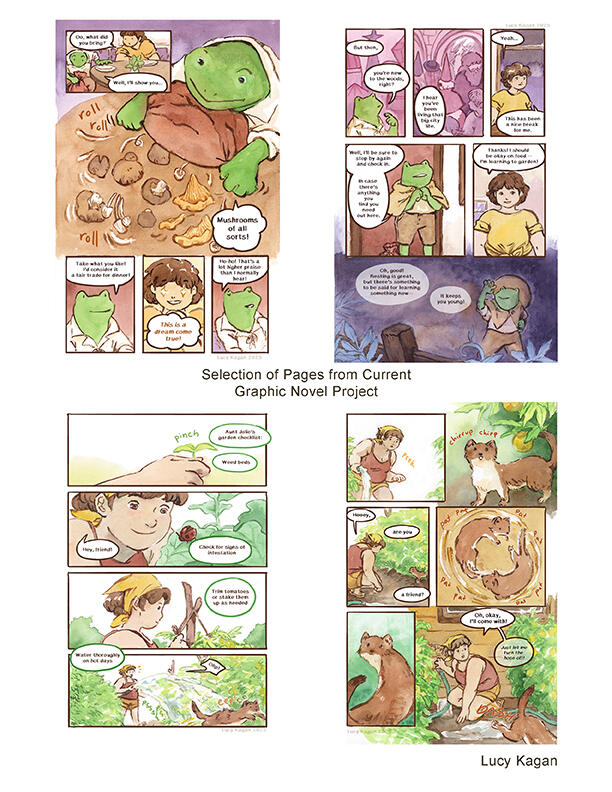 Lucy Kagan is a comic artist and textile designer from Raleigh, NC, who graduated from SCAD with a BFA in Sequential Arts, with a minor in Fibers in 2013. Her whimsical watercolor work centers on the everyday magic of the natural world, often with themes of how humans feel alienated from nature and struggle to feel connection again.